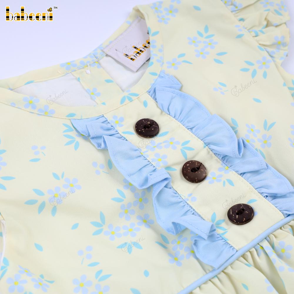 Features: Lovely dress for little girls with flowers printed on fabric, ruffle on chest, two pockets, angel sleeves. Perfect for Spring summer. Best gifts for birthday or special days.