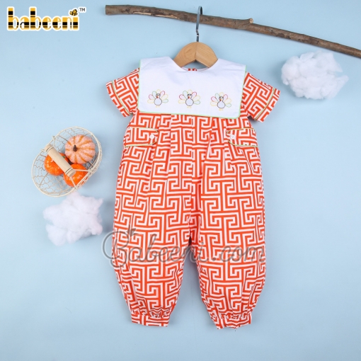 Tags: thanksgiving boy outfit, boy embroidery clothing, thanksgiving clothes, turkey clothing, turkey pattern, baby boy bubble, long bubble, kids romper