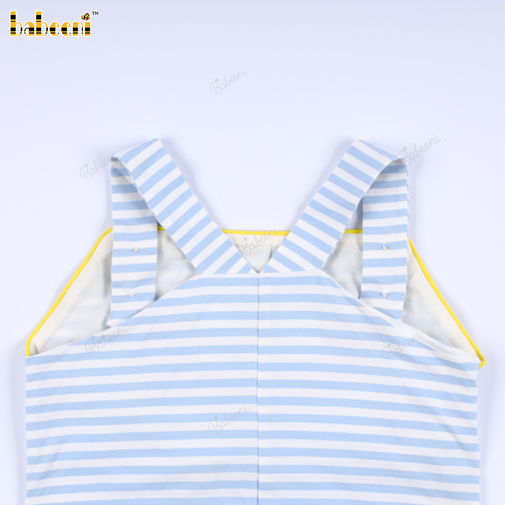 Features: Nice shortall for little boys with hand smocked lion, monkey, elephant & giraffe on the chest, covered buttons, yellow pipping. Perfect for Spring summer. Best gifts for birthday or special days.