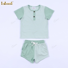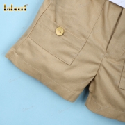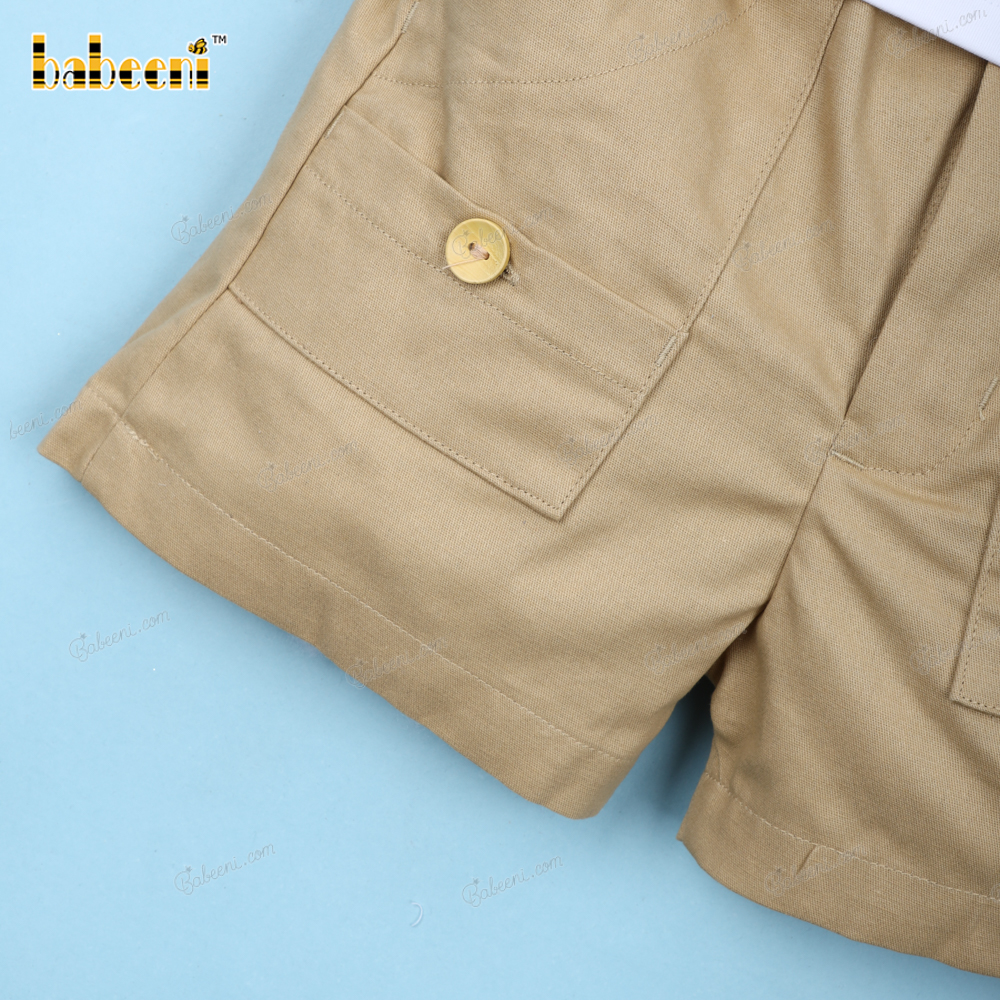 Feature: A cute tiger on the front of the chest with white top pair it with a kaki bottom. This outfit is simple but tasteful for your boy on a day out this summer.