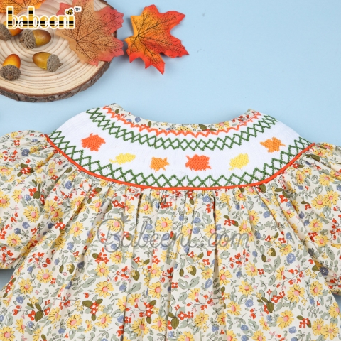 Tags: autumn smocked bubble, smocked bubble, floral smocked clothing, floral clothing, long bubble, baby girl bubble, smocked bubble romper