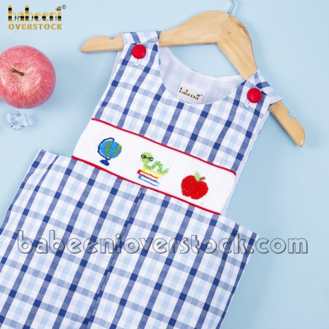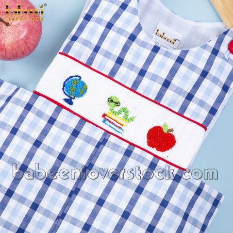 Bookworm smocked boy shortall - BB1434