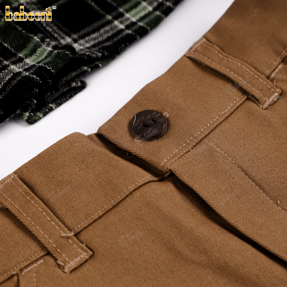 Feature: This boys' outfit boasts a stylish yet dynamic look with a classic dark blue flannel plaid shirt, featuring long sleeves that can be neatly rolled up. The convenient front button closure, combined with neutral brown khaki shorts, creates a harmonious and fashionable overall look. The design is perfect for playtime, parties, photoshoots, or other special occasions.