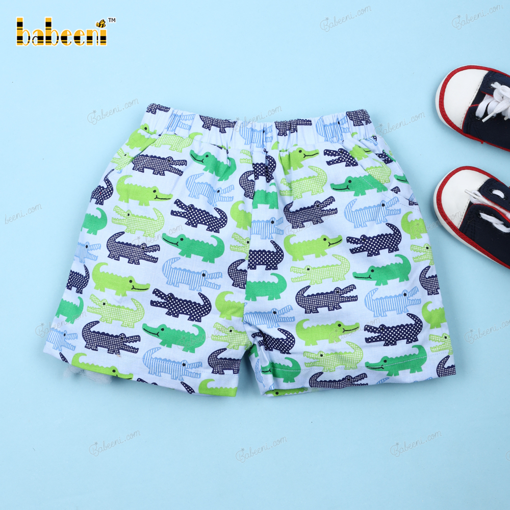 Feature: This summer, keep your boy fresh in this outfit. With a green alligator on a white top and an alligators print bottom