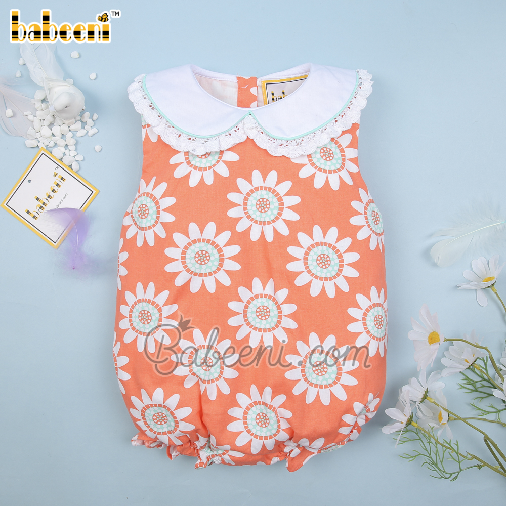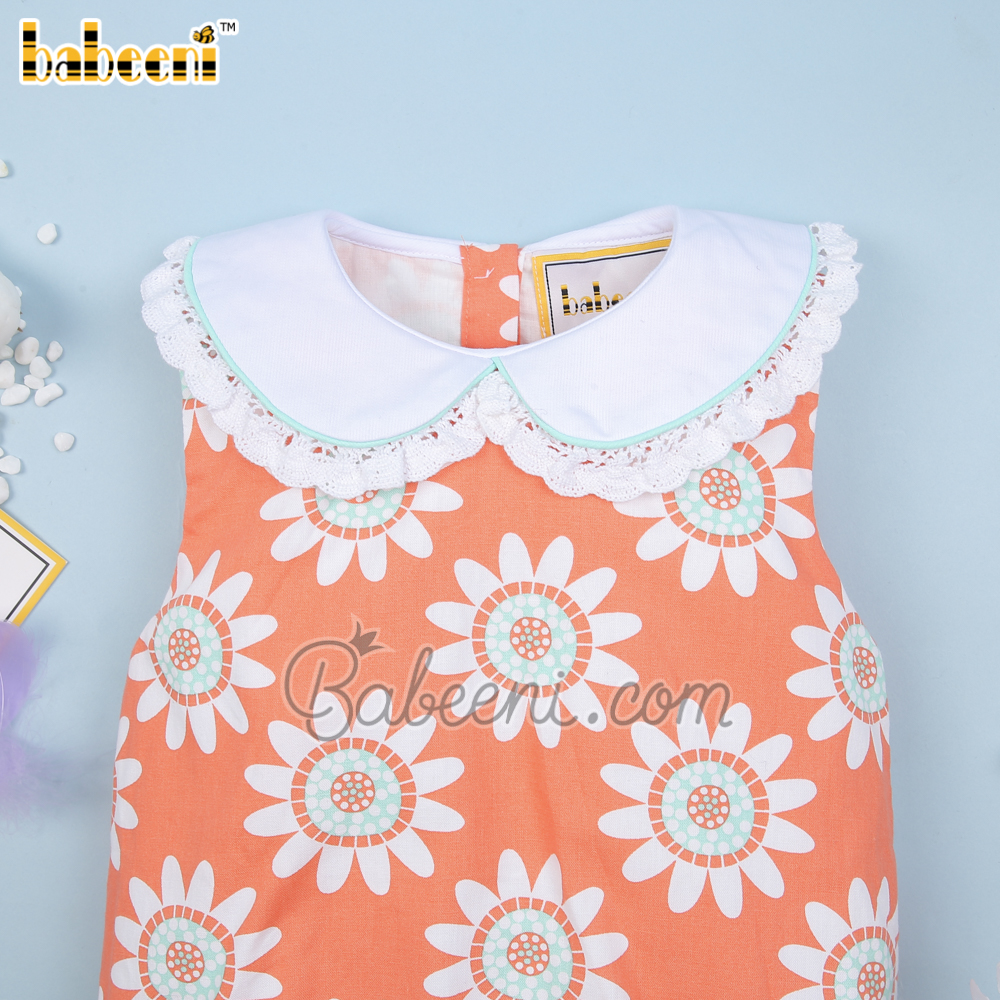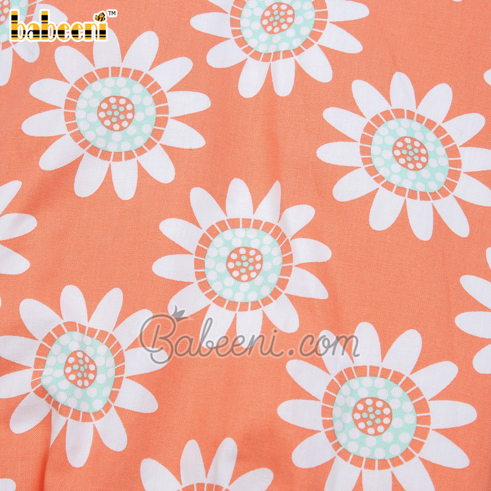 Fabric: Coral with mint coral sunflower printed fabric +White pique plain