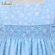 Geometric Smocked Dress In Blue With White Floral For Girl - BB3199C
