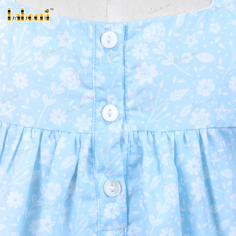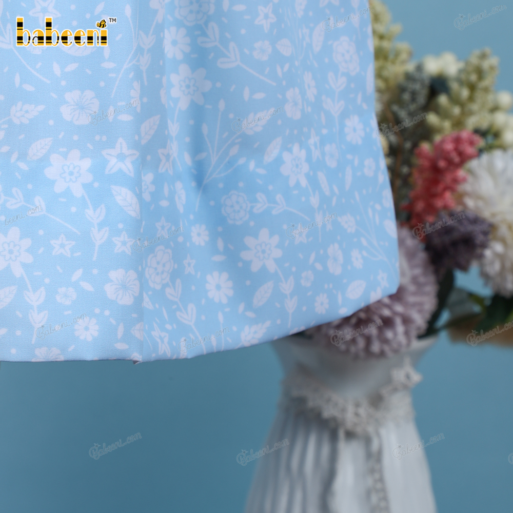 Geometric Smocked Dress In Blue With White Floral For Girl - BB3199A