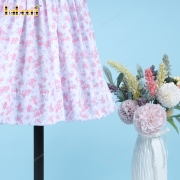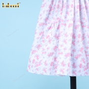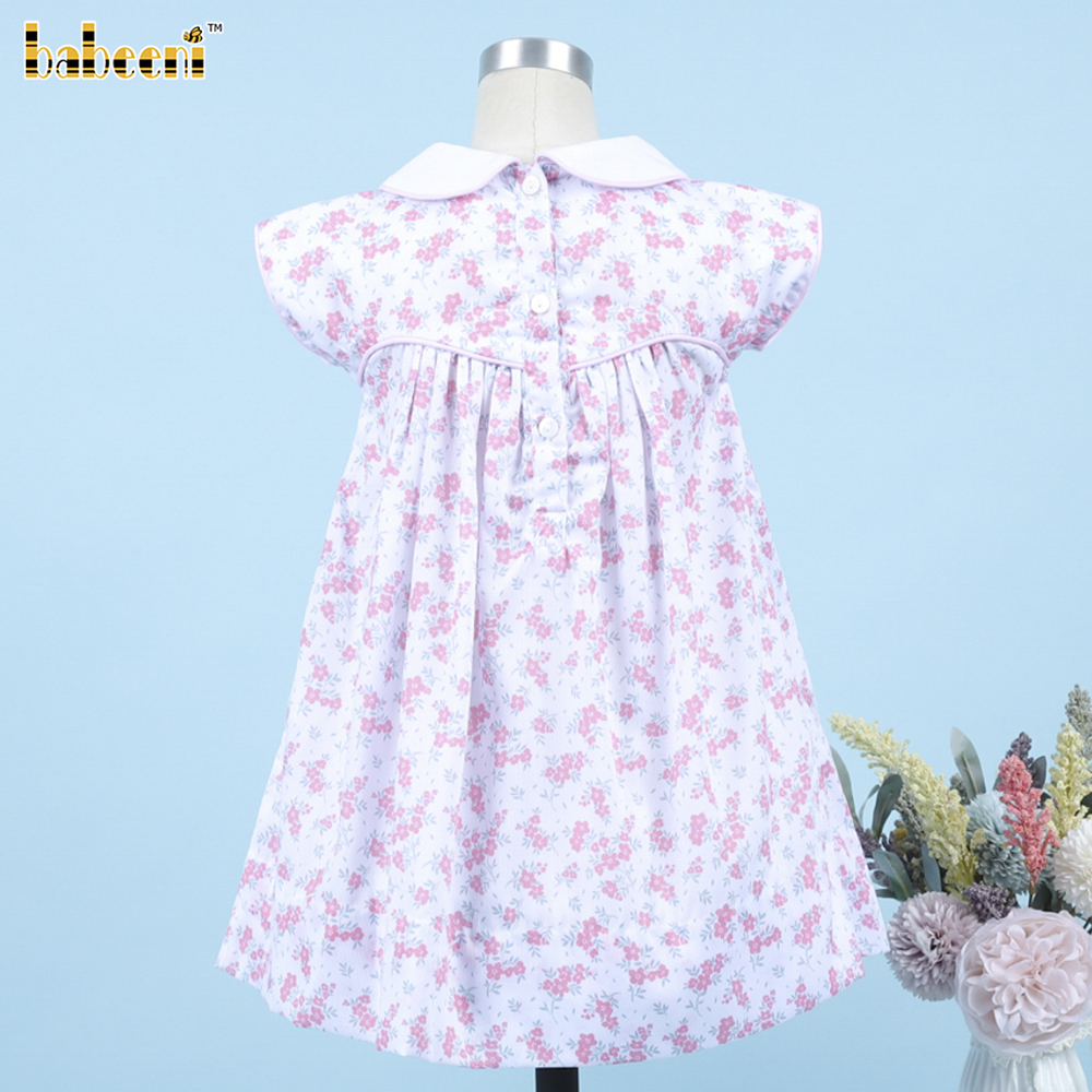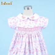 Geometric Smocked Dress With Pink Hand Embroidery Flowers For Girl - BB3305A
