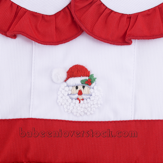 Feature: Long sleeves girl embroidery dress with hand embroidered + french knot Santa Claus on the chest, red ruffles on Peter Pan collar.