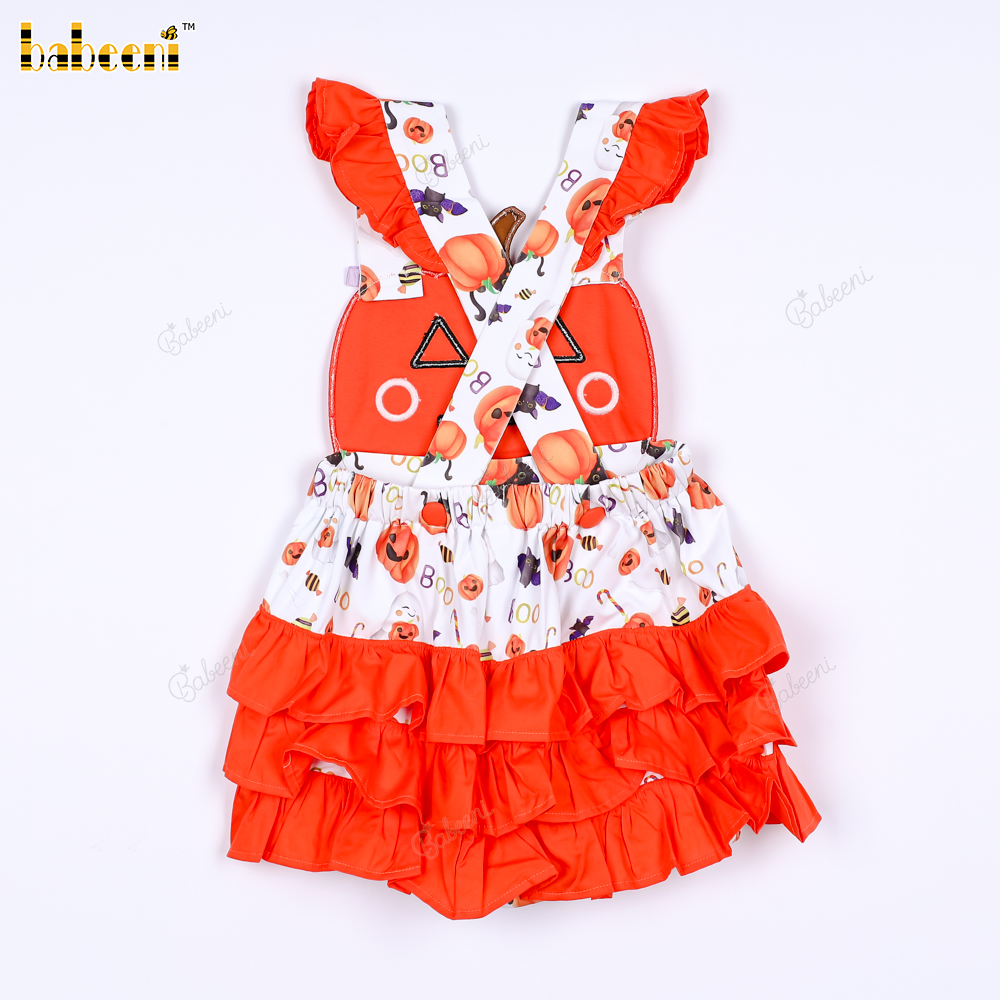 Features: Lovely Halloween overalls for little girls with applique of big pumpkin on the chest. Best gifts for birthday or Halloween days.
