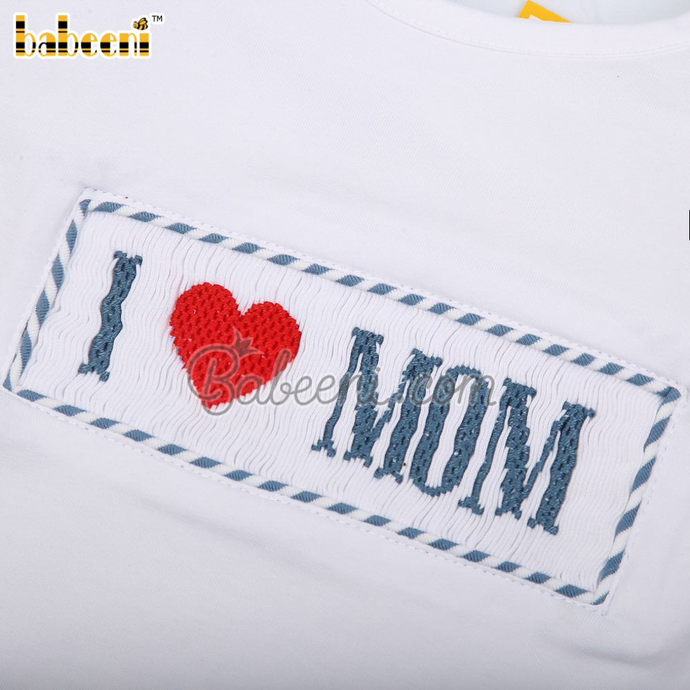 Features: Lovely set clothing for little girls with hand smocked I love Mom on the chest, ruffle on bottom, angel sleeves. Perfect for Spring summer. Best gifts for birthday or special days.