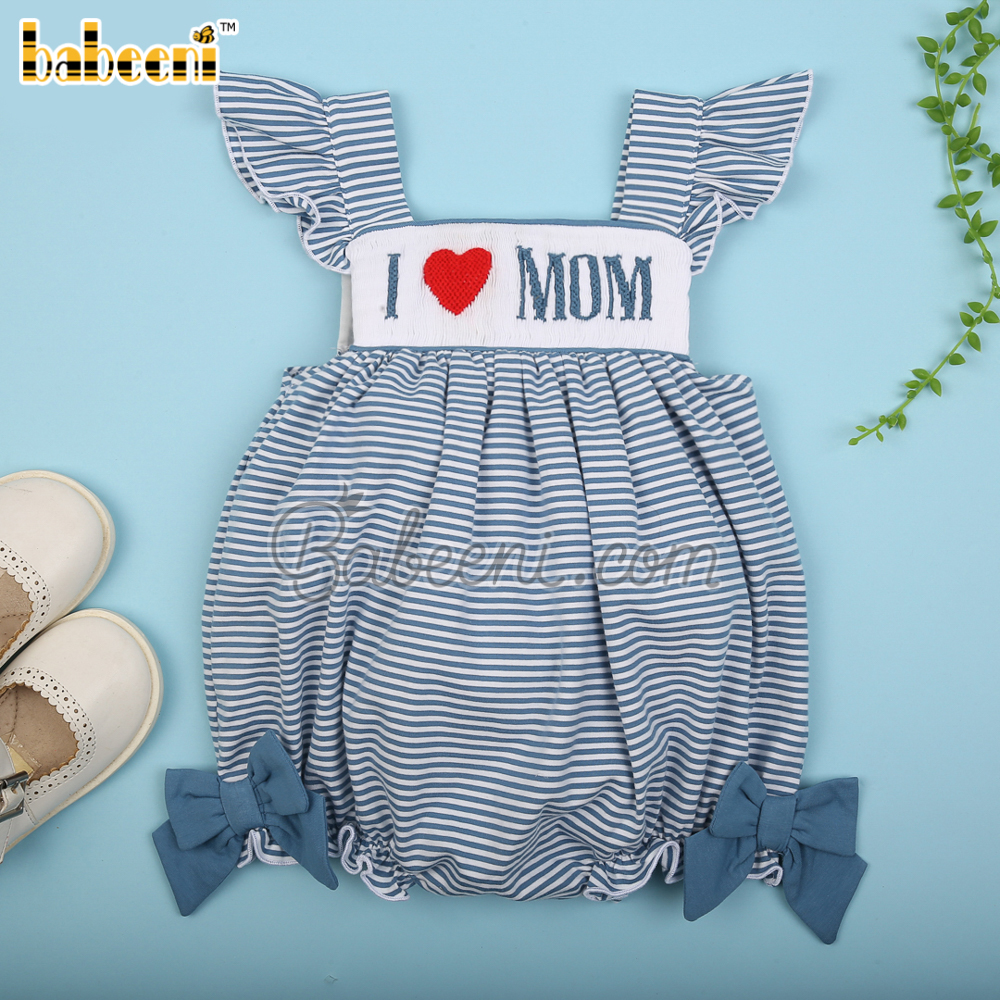 I love Mom hand smocked bow bubble for little girls – BB3394A