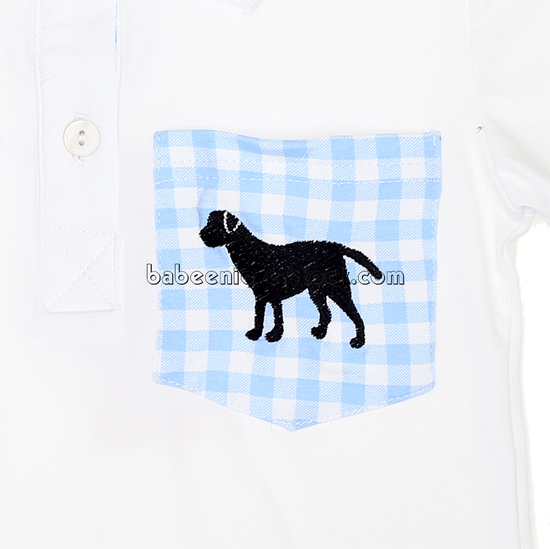 Feature:Nice outfit for little boy with labrador machine embroidery patterns on the chest pocket and on shorts.