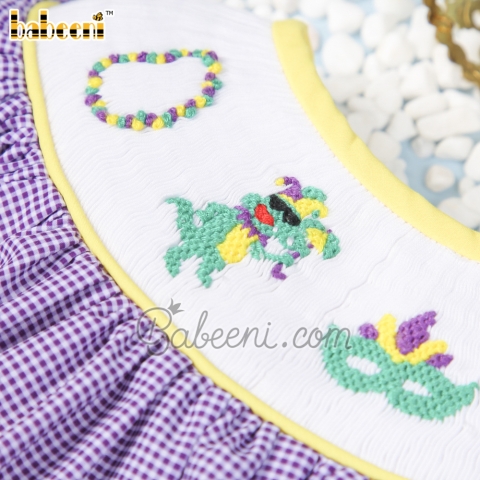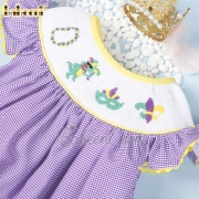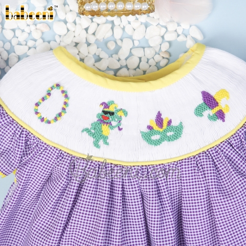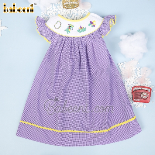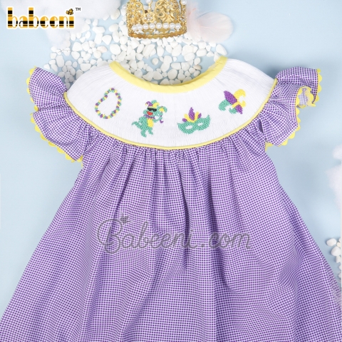 Mardi gras hand smocked girl dress – BB2686A
