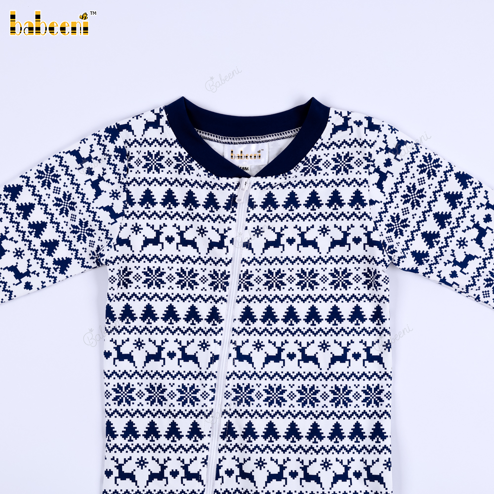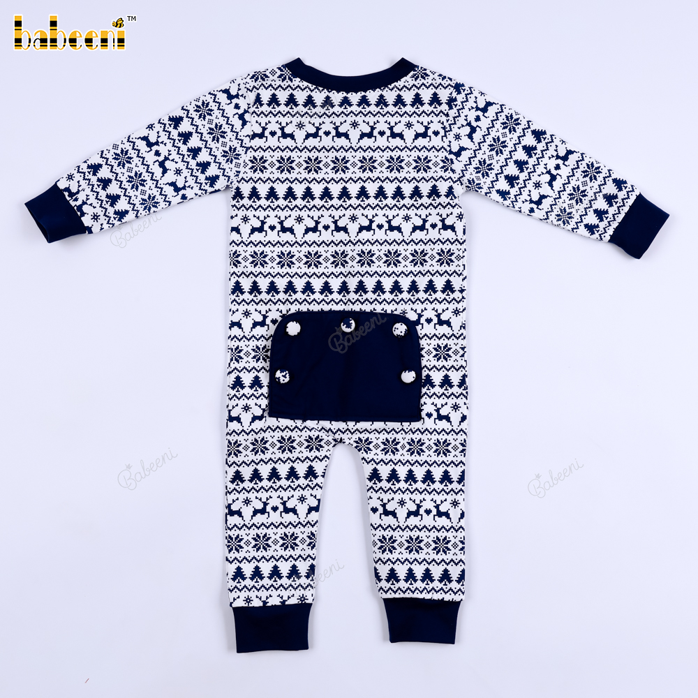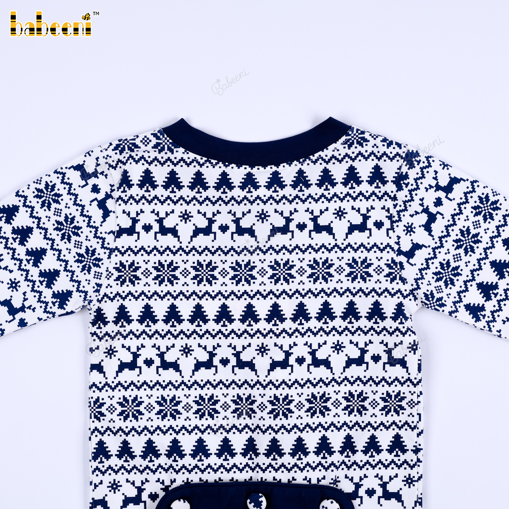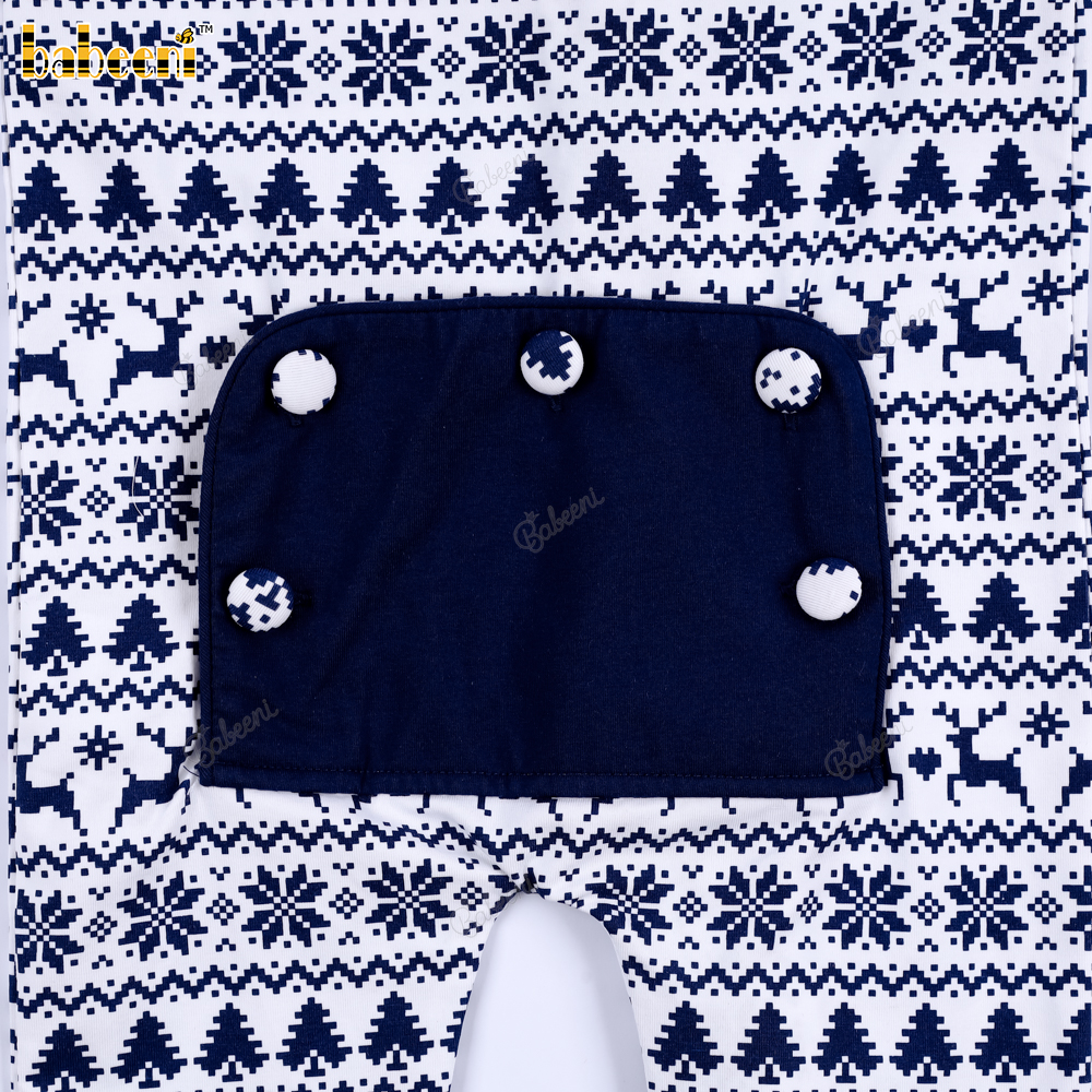 Features: This baby Christmas outfit features a classic Christmas motif with subtly repeating images of reindeer, Christmas trees, and snowflakes. The elegant charcoal purple and white color scheme creates a warm, sophisticated feel, perfect for winter. The long sleeves with ribbed collar, cuffs, and ankles provide excellent warmth, protecting your baby in cold weather. The dark blue back pocket adds a cute and practical touch. Suitable for everyday wear, outings, photoshoots, or Christmas celebrations.