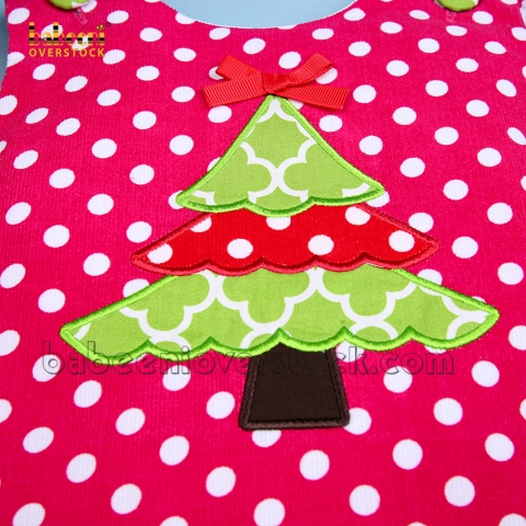 Feature: Adorable A-line dress with pine applique on the chest for Christmas, buttons on the shoulder for easy dressing.