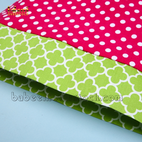 Material : Pink with white dots corduroy and lime green quatrefoil on the hem