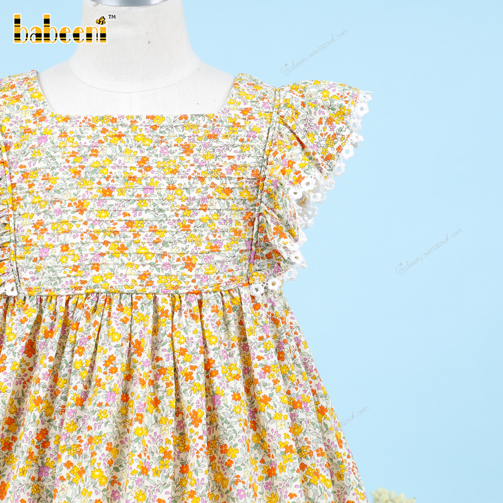 Feature: Green floral plain dress for your baby girl in this spring and summer.