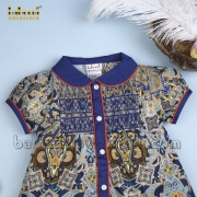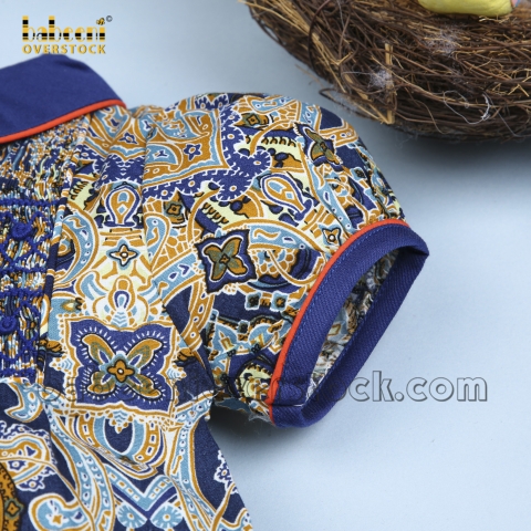 Feature: Nice geometric paisley smocked dress with impressive front buttons, beautiful geometric smocked patterns, short sleeves.