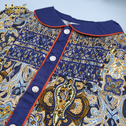 Feature: Nice geometric paisley smocked dress with impressive front buttons, beautiful geometric smocked patterns, short sleeves.