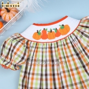 Feature: Nice dress in bishop style for little girl with pumpkin hand smocked patterns on the neck, short sleeves.