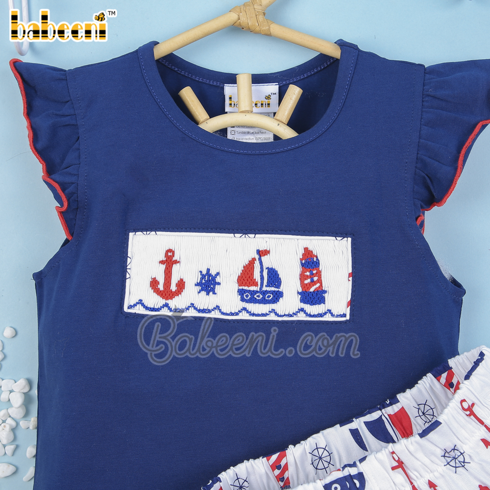 Sailboat hand smocked girl outfit - BB1529