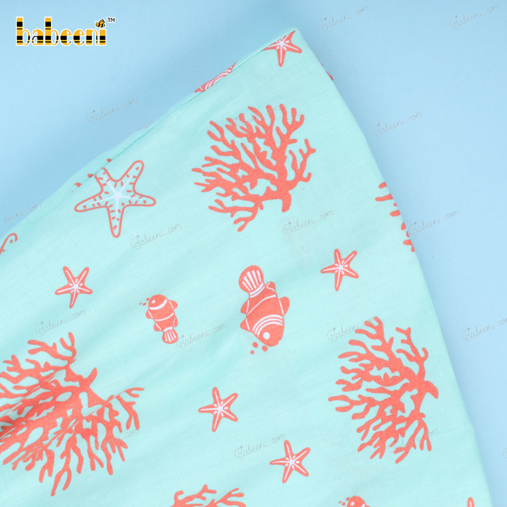 Fabric: mint with coral, starfish and clownfish