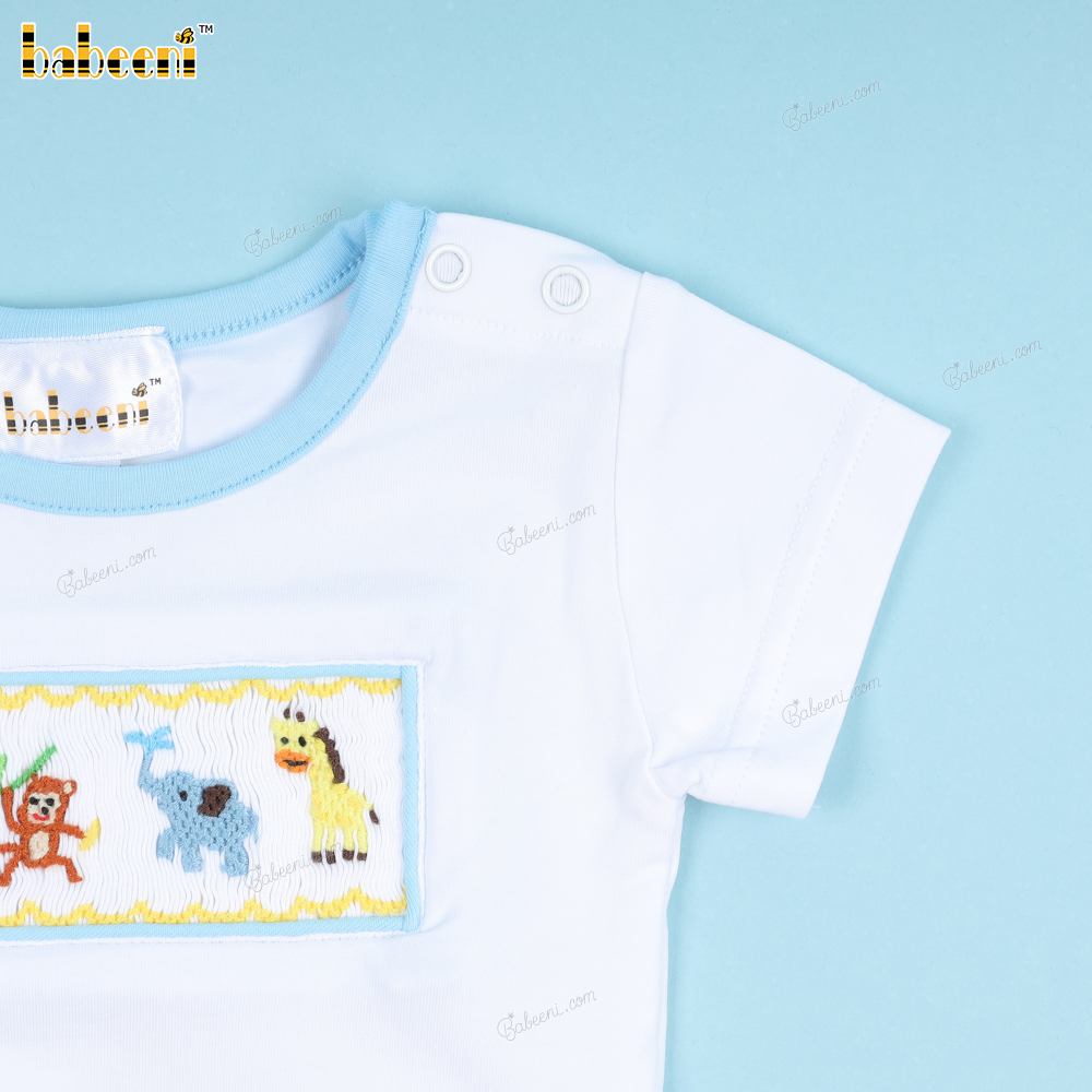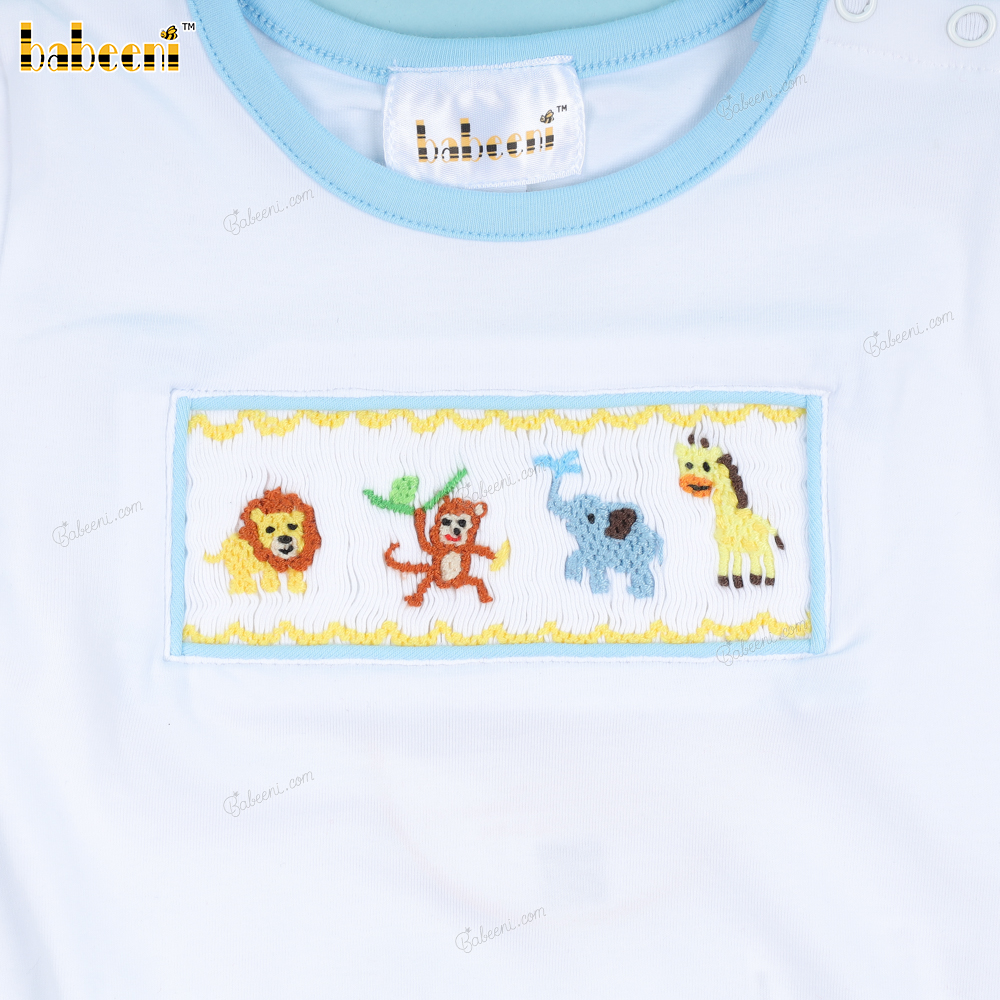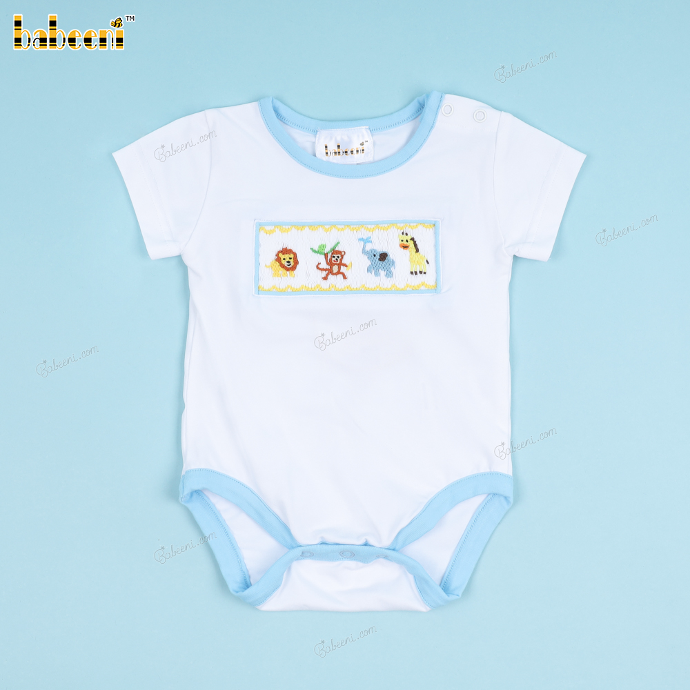 Smocked Animals Blue Accent Bubble For Boy - BB3366