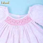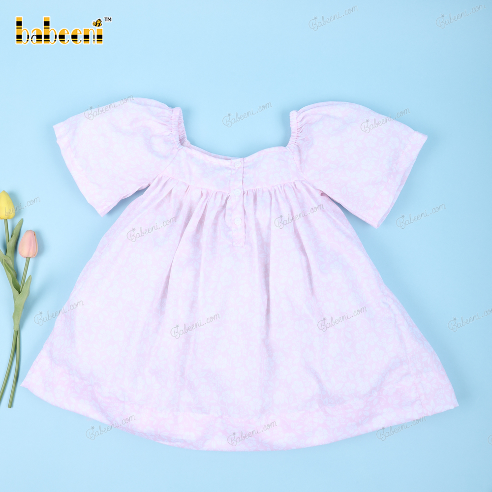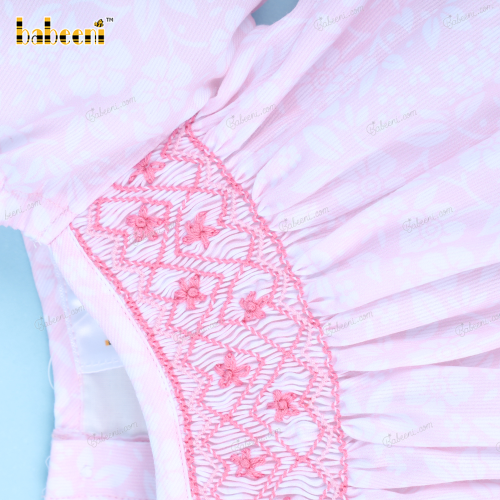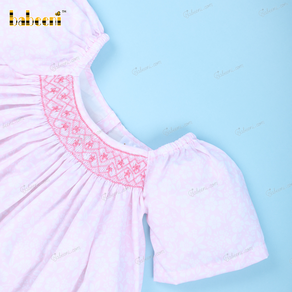 Smocked Geometric Bishop Dress In Pink For Girl - BB3145A