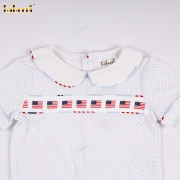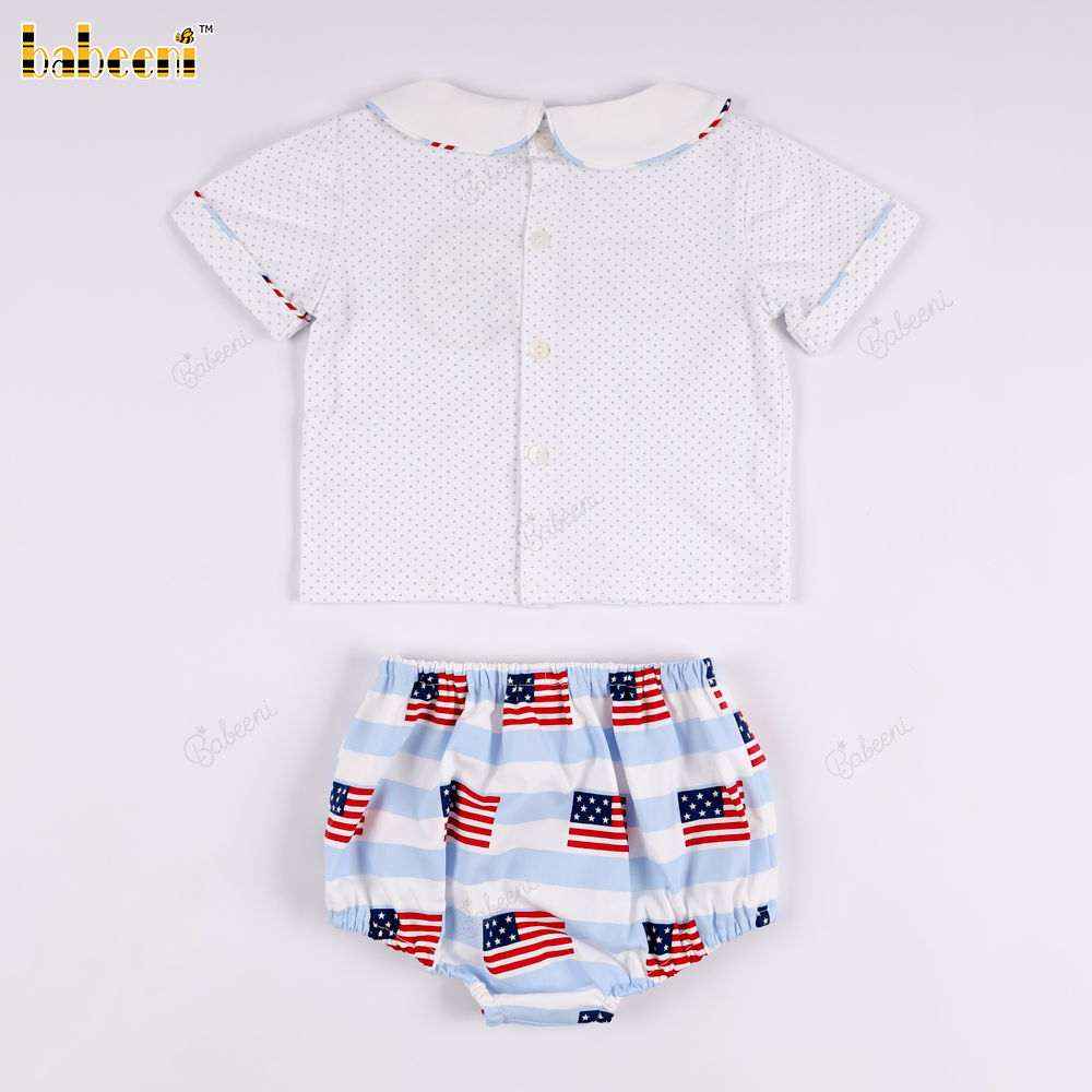 Square-neck t-shirt and bloomer pants set with American flag print.- BB3574