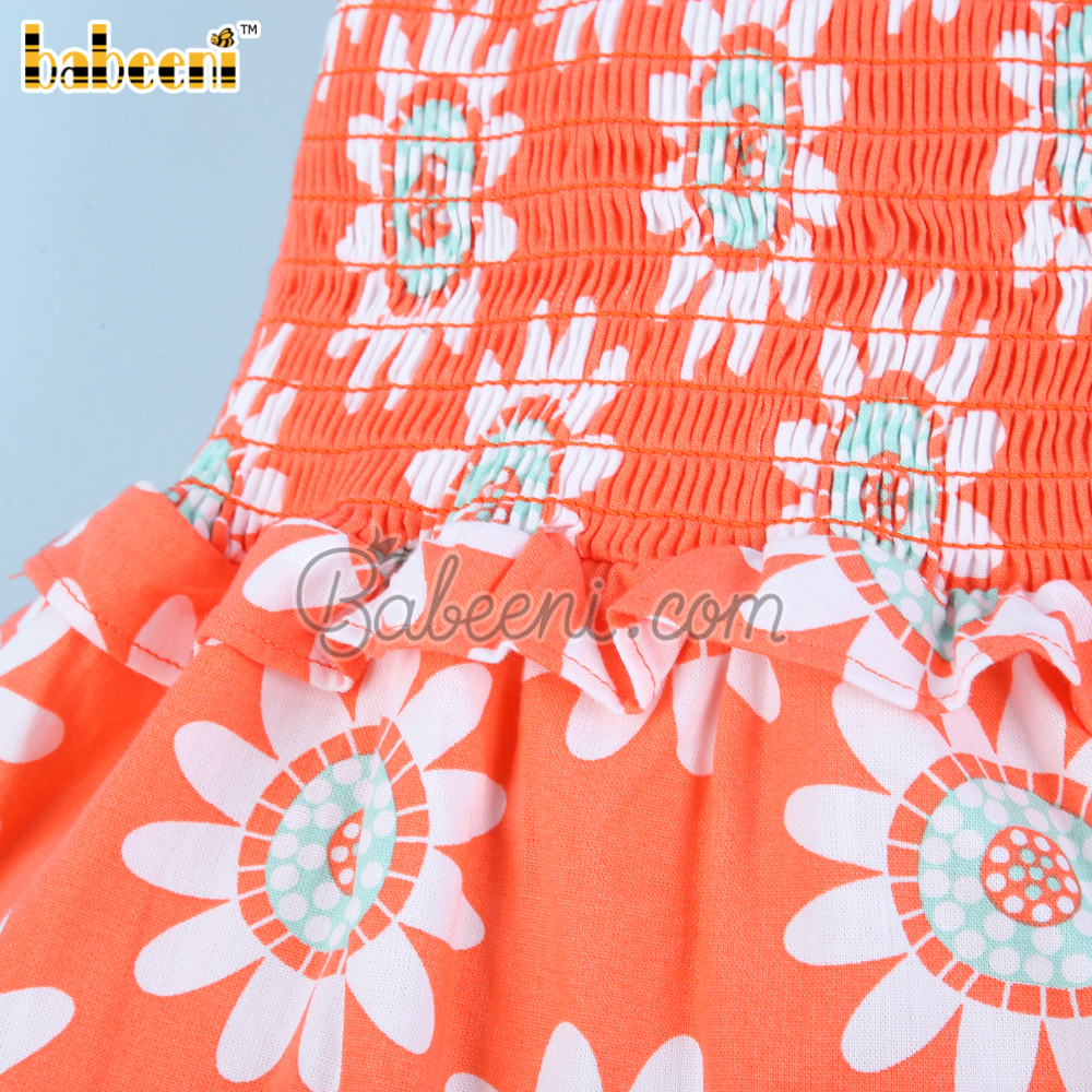 Sunflower printed in coral baby dress - BB3102A