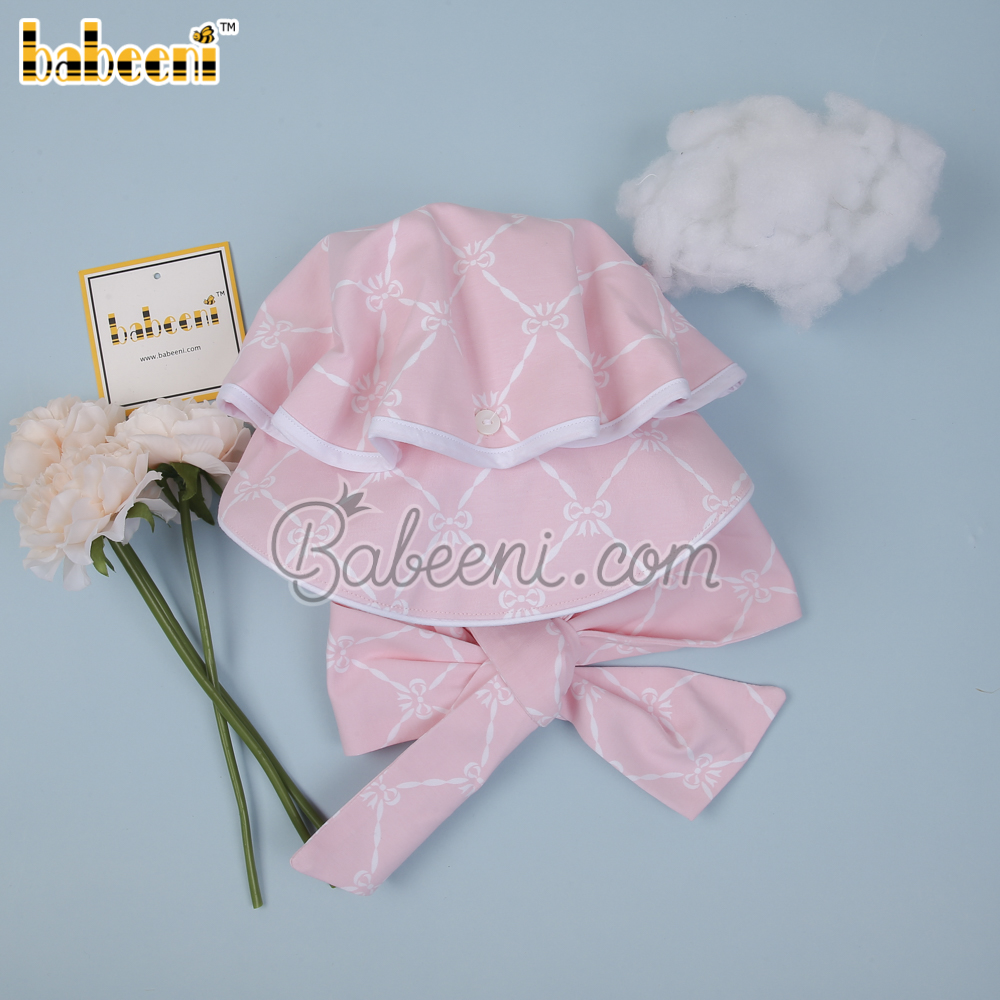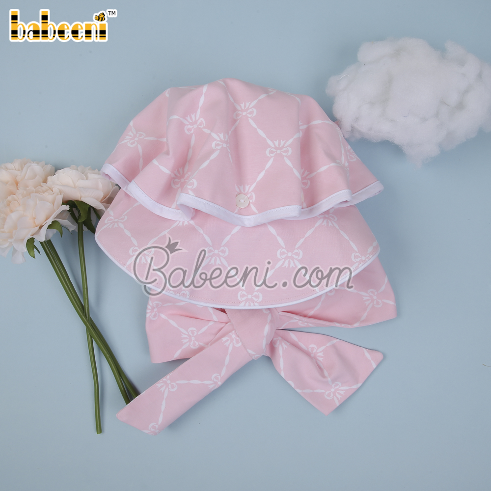 Features: Cute bonnet for baby girl with bows printed on fabric, strap for easy dressing. Perfect for little baby girls. Best gifts for birthday or special days.